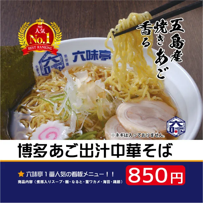 また、販売商品はラーメンだけではなく、六味亭オリジナル長崎産焼あごの味付き万能出汁をお持ち帰りしやすいよう販売しております。希釈タイプですのでお鍋やおでん、その他様々な