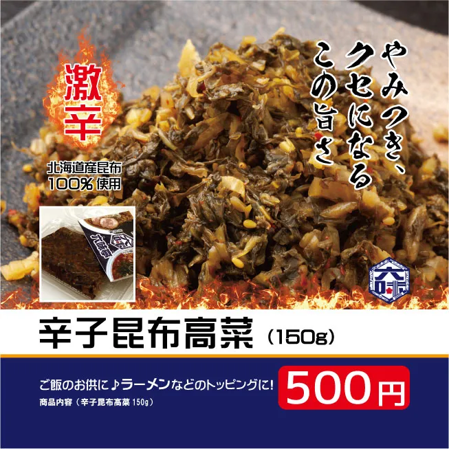 ラーメンに入れても良し!白飯にもベストマッチな大人気商品『辛子昆布高菜』も